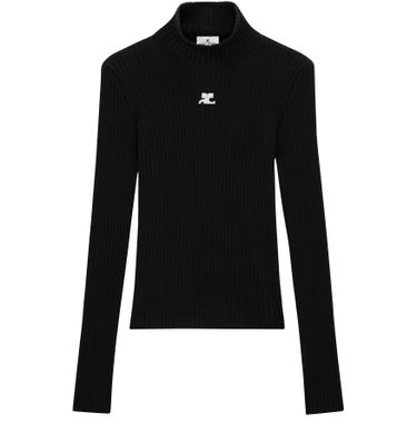 Reveal Courreges's long ribbed knit top, featuring a sleek mockneck and long sleeves for a refined silhouette. The embroidered chest logo adds a signature touch, while the textured finish ensures modern appeal. Effortlessly versatile, this piece transitions from day to night with ease.