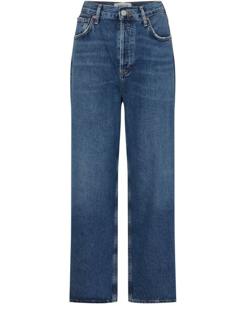 Elevate Agolde's Ren jeans with their high-waisted fit and trendy straight cut. Featuring ankle length, five-pocket style, and a signature logo at the back label, these jeans promise modern style. Complete with a buttoned and concealed zipper closure, belt loops, and back patch pocket for a sleek silhouette.