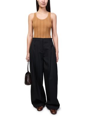 Reveal Bompard's ribbed vest top, designed with a round neck for a refined silhouette. The soft ribbed texture adds dimension, while its versatile cut pairs effortlessly with tailored pants or relaxed denim. Perfect for layering or wearing solo, this top brings understated sophistication to any look.