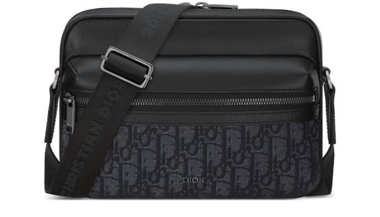 Reveal Dior's Rider 2.0 Zipped Messenger Bag. Featuring a chic zipper closure, it boasts a single handle and an iconic front logo. The brand's monogram and visible topstitching add finesse. Designed with an adjustable strap for crossbody wear, the wide strap ensures comfort and modern style.