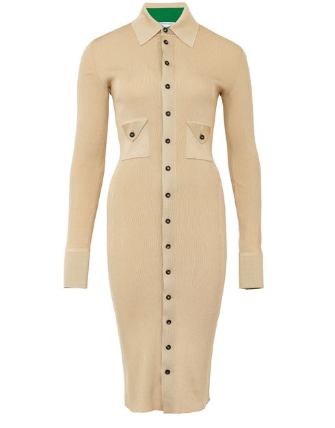 Fitted and trimmed in a light color, the Bottega Veneta Military maxi dress elegantly embraces the female form. It can be worn on any occasion and will really enhance your waistline!