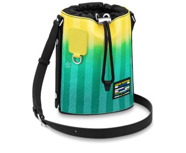 Inspired by designs from Louis Vuitton’s archives, Virgil Abloh created the Sac Marin BB bag, a smaller sailor’s bag with drawstring closing. Made from Damier Stripes canvas, with the iconic checkerboard re-arranged into stripes, the tone-on-tone gradient green stripes bring a fresh feel to the bag. The removable strap is adjustable to assure comfortable carry.