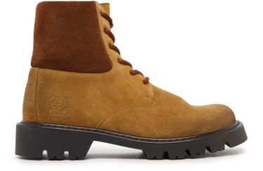 Loewe's Sierra ankle boot showcases a high-top upper with visible stitching, blending style and durability. These lace-up ankle boots feature a round toe and a sturdy block heel, perfect for any occasion. The thick outer sole provides traction, ensuring comfort and confidence with every step you take.