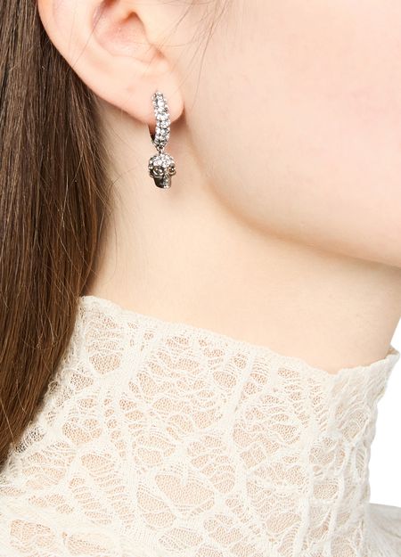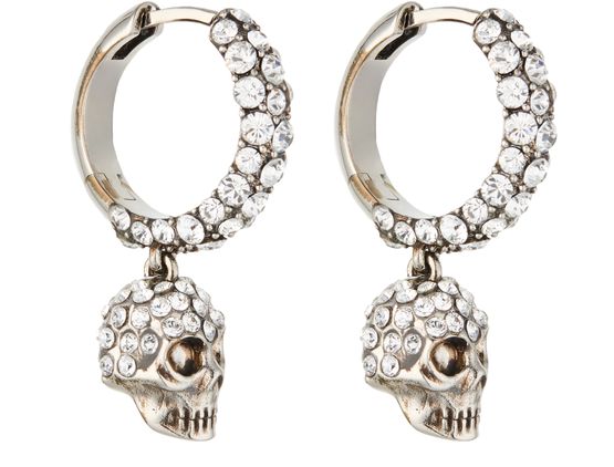 Reveal Alexander McQueen's Skull earrings with hook closure and a striking silver finish. Sold individually, this single earring features studded details that add a bold edge to any ensemble.