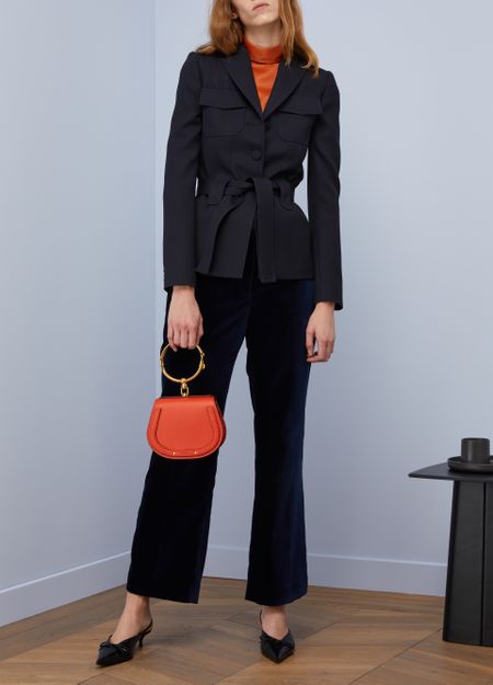Just in from the fashion house, the Small Nile Bracelet Bag made its debut in Chloé's Spring-Summer 2017 Collection, showcased at the Grand Palais in Paris. In smooth leather and velvet calfskin, it takes on the same equestrian style as its big sister, the Mini Marcie, with an added detail: a dangling gilded brass bracelet that can be used as a handle instead of the...
