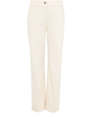 Moncler's straight leg pants offer a sleek silhouette with a buttoned and concealed zipper closure for a polished look. Designed with belt loops and side pockets, these ankle-length casual pants feature visible stitching that adds a touch of sophistication. The straight cut ensures versatility, making them perfect for any occasion.