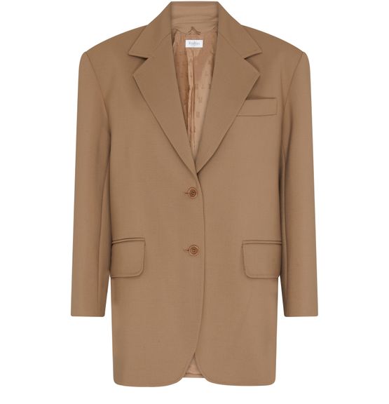 Max Mara's Suez blazer showcases a sophisticated single-breasted silhouette with a notched collar and a refined two-button closure. Its long sleeves and elegant flap pockets create a timeless appeal, while the two front pockets add practicality. Perfect for both casual and formal occasions, this blazer elevates any ensemble effortlessly.