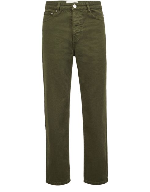 Ami's Tapered fit jeans offer a low-waisted fit with a straight cut that flatters every silhouette. Designed with a buttoned and concealed zipper closure, they feature belt loops and visible stitching for a classic touch. The five-pocket style and below-knee length make these denim jeans a versatile wardrobe essential.