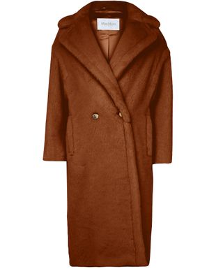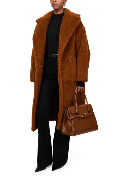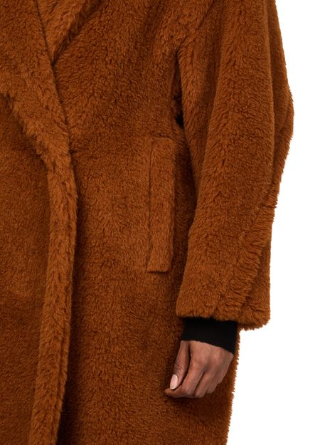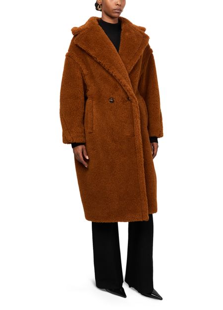 Reveal Max Mara's Teddy Tedgirl coat, a masterpiece of warmth and style. This oversized, long coat features a double-breasted closure and side pockets, crafted from a luxurious warm fabric with fur details. Perfect for any occasion, it combines classic elegance with modern flair.
