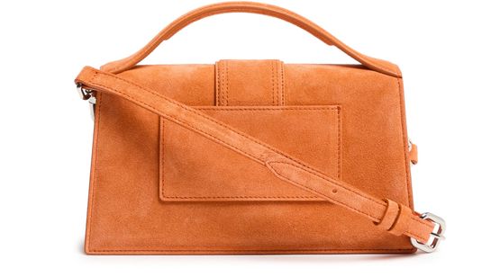 Reveal Jacquemus's Bambino large bag, a statement piece that effortlessly transitions between shoulder and crossbody wear. Adorned with a metallic "Jacquemus" logo, it features a rounded pointed flap, single leather handle, and a thin strap. The adjustable and detachable strap ensures versatility, while the silver front logo adds a touch of elegance.