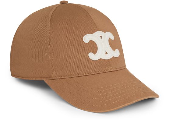 Celine's Triomphe baseball cap showcases a stylish hexagonal design adorned with a distinctive Triomphe patch. Its comfortable visor offers sun protection, while the adjustable tab ensures a perfect fit. Crafted in Italy, this cap combines elegance and practicality, making it a must-have accessory for any fashion-forward individual.