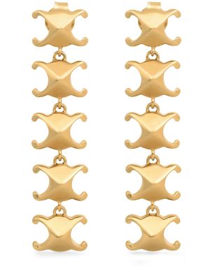 Elevate your elegance with Celine's Triomphe stud long earrings, crafted in brass with a luxurious gold finish. Designed for pierced ears, these stunning pieces showcase an engraved Celine's signature, embodying sophistication and style. Perfect for any occasion, they effortlessly enhance your look, making a statement that resonates with timeless beauty.