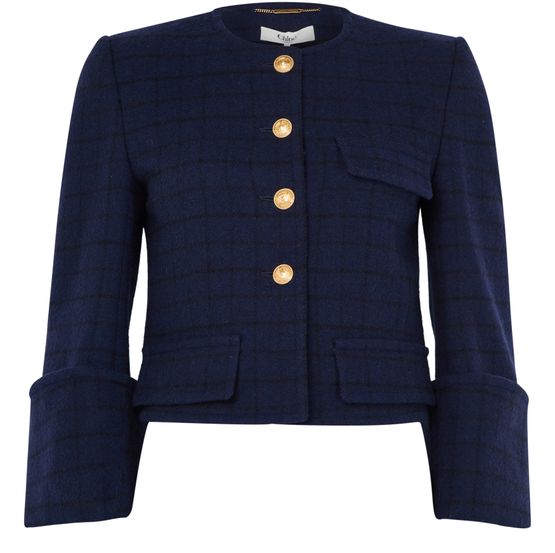 Discover Chloe's Tweed Jacket, an embodiment of casual elegance. With its boxy fit and crop length, this collarless design exudes modern charm. The button fastening and long sleeves enhance its practicality, while breast and flap pockets add style. The checked pattern completes its sophisticated appeal.