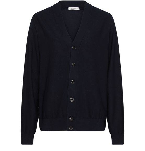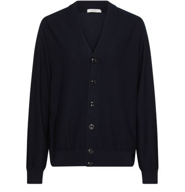 Lemaire's Twisted cardigan offers a long-sleeved gilet silhouette with an asymmetric cut that exudes modern elegance. Its ribbed texture adds depth, while the V-neck enhances the refined look. A buttoned fastening completes this versatile piece, making it perfect for layering or as a standalone statement in any wardrobe.