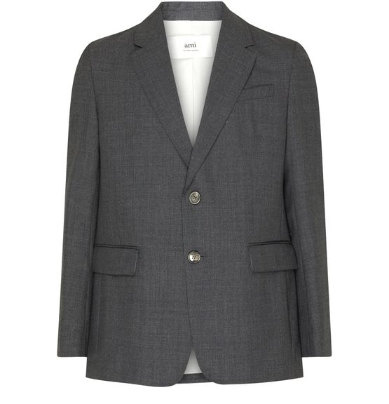 Ami's Two buttons jacket is a short, long-sleeved piece with a notched collar and single-breasted, 2 button closure. It features flap pockets, a breast pocket, and two front welt pockets. The logo at the back label adds a touch of branding to this classic and versatile outerwear option.