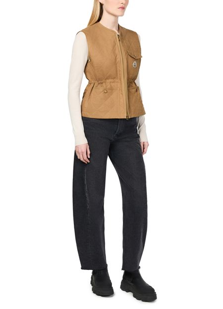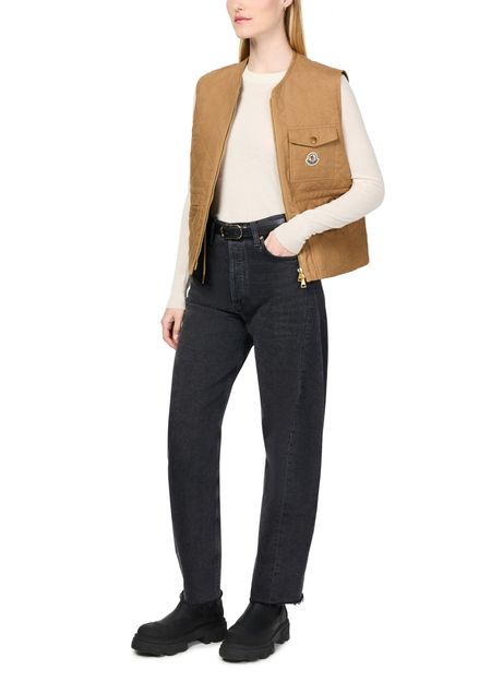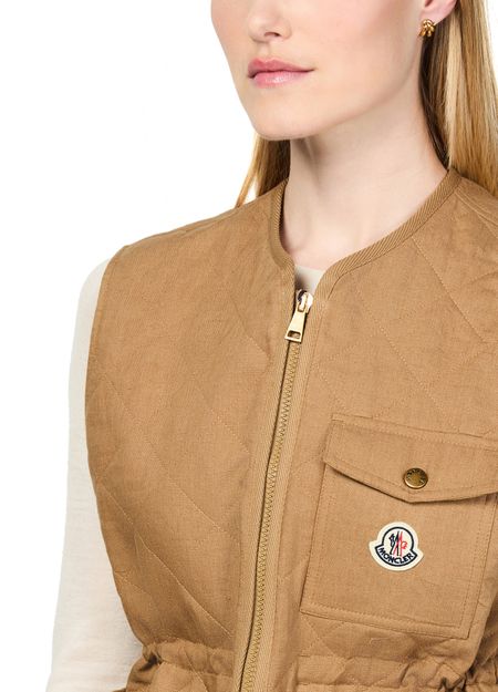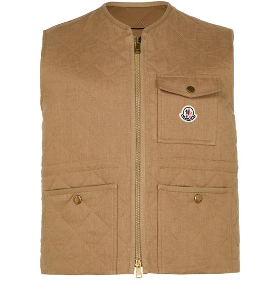 • Description : two front pockets, flap pockets, breast pocket, zipper closure, chest logo, appliquéd logo, short, gilet, collarless, sleeveless.