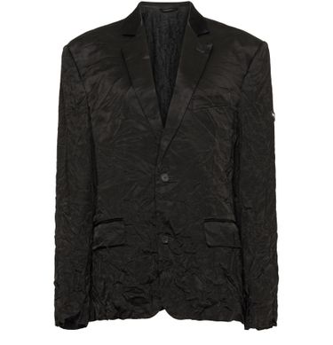 Balenciaga's Veste Délavée features mirror satin, medium fit, notch lapel, 2 buttons single-breasted at front, 2 flap pockets, 1 piped pocket at chest, 4 button cuffs, Balenciaga rubber tag on left sleeve, Made in Italy, dry cleaning.