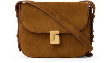 Elevate Soeur's Belissima mini bag with its flap closure and gold finish. This crossbody accessory features a single handle, thin strap, and visible topstitching, seamlessly blending practicality with elegance.