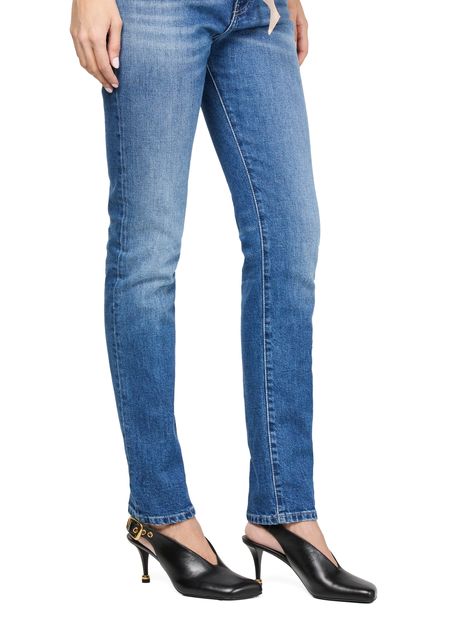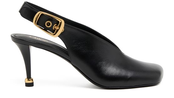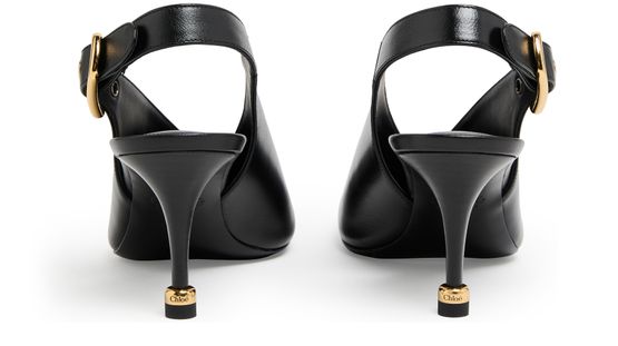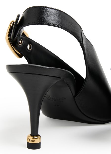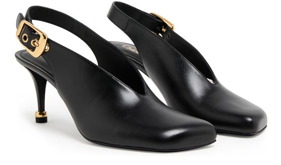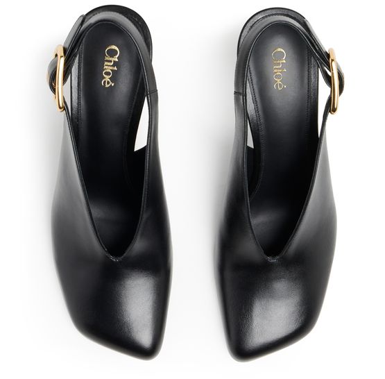 Chloé's Andrea pumps showcase a chic closed design with a square toe and a stylish buckled strap. Adorned with a gold finish and visible stitching, these pumps elevate any outfit. The logo-printed insole offers comfort, while the elegant silhouette makes them perfect for both sandals and slides occasions.