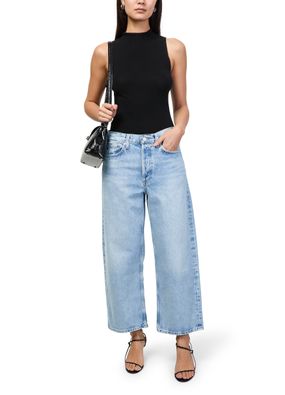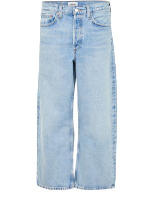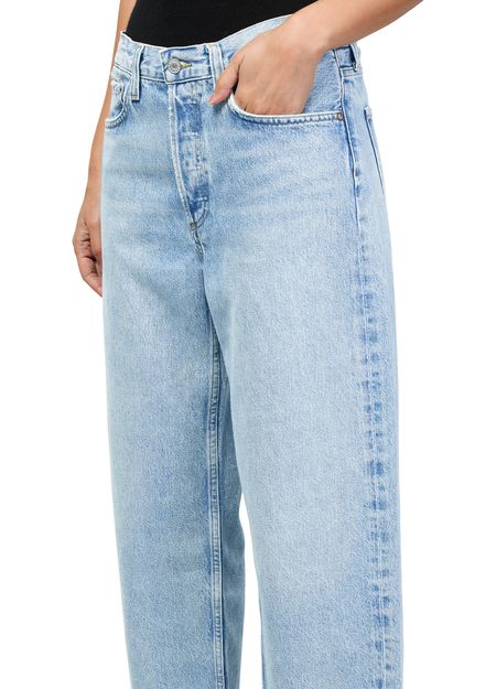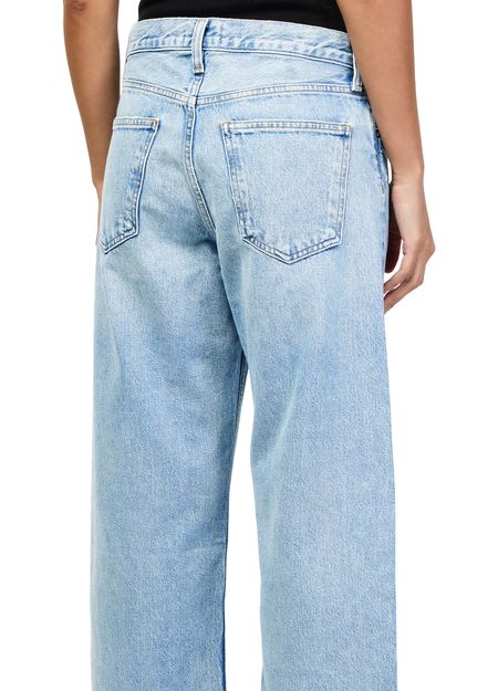 Reveal Agolde's Arc wide leg jeans, crafted from premium denim with a buttoned zipper closure. The wide-leg silhouette and visible stitching offer a modern edge, while belt loops and practical pockets ensure both style and function. Perfect for elevating everyday looks with effortless sophistication.