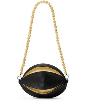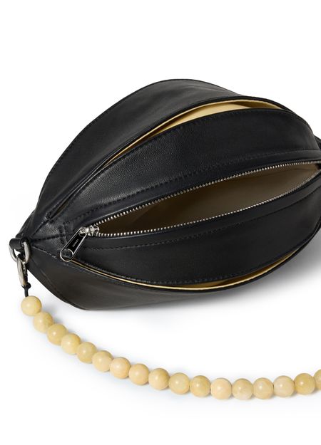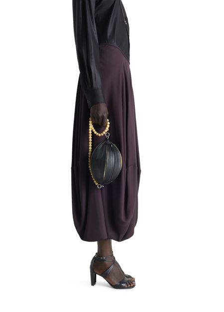 Reveal Lemaire's Balloon Slits bag, crafted from nappa lambskin leather with a single handle for effortless sophistication. Visible stitching and silver-finish hardware highlight its refined construction, while a zipper closure secures essentials in a single compartment lined with fabric. This piece seamlessly blends modern design with practical elegance.