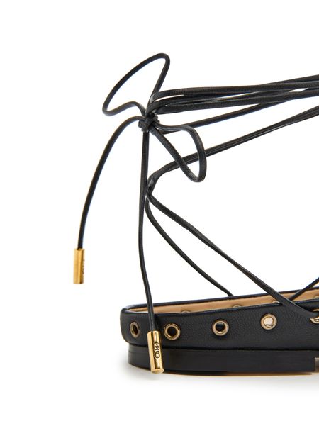 Reimagine Chloé's Ghilies mules, a fusion of elegance and comfort. Featuring ankle lacing and a flat design, these sandals boast a round toe, visible stitching, and a gold finish. The closed silhouette ensures versatility, making them a refined choice for any stylish wardrobe.
