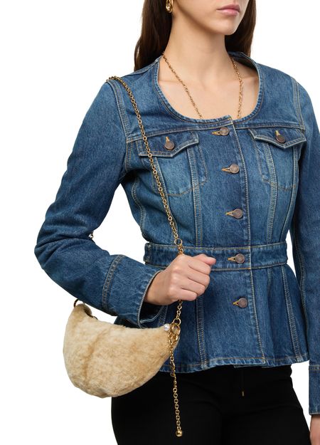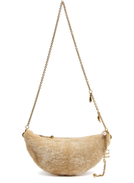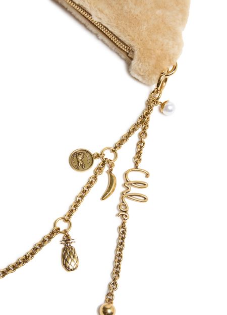 Reveal Chloé's Icons hobo bag, a masterpiece of modern design. Crafted from warm fabric, it features gold-tone charms elegantly suspended by a small chain. The chain strap and zipper closure add functional elegance, while bead details enhance its sophisticated allure.