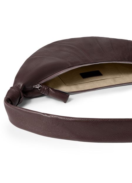 Reveal Lemaire's Croissant medium bag, crafted from grained leather with a padded texture for a refined touch. The single handle and zipper closure offer effortless sophistication, while the contrast lining and open interior pocket ensure both style and practicality in every detail.
