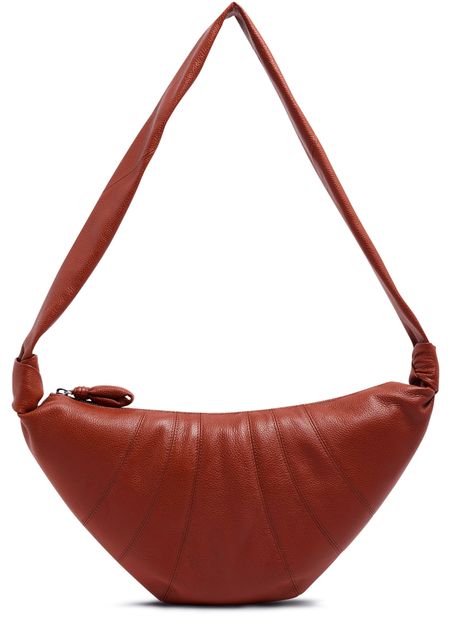Reveal Lemaire's Croissant medium bag, crafted from grained leather with a padded texture for a refined touch. The single handle and zipper closure offer effortless sophistication, while the contrast lining and open interior pocket ensure both style and practicality in every detail.