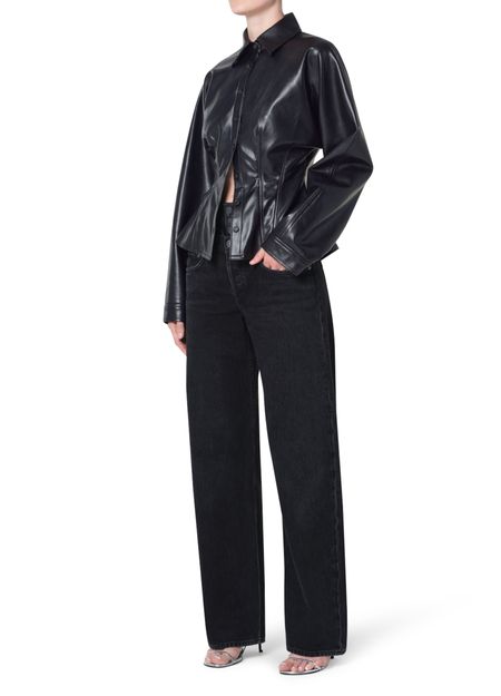 Introducing Agolde's slim fit top, a masterpiece of modern design. This long-sleeved piece features a front buttoned closure and visible stitching, creating a sleek silhouette. The fitted waist adds a touch of elegance, making it perfect for both casual and formal occasions.