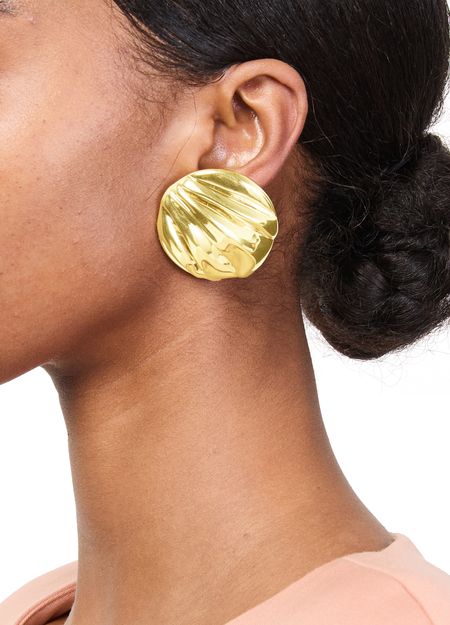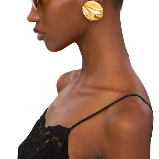 Reveal Chloé's round earrings, crafted with a radiant gold finish and secured by a refined clip closure. These earrings blend a modern silhouette with timeless appeal, making them a standout accessory for any occasion.