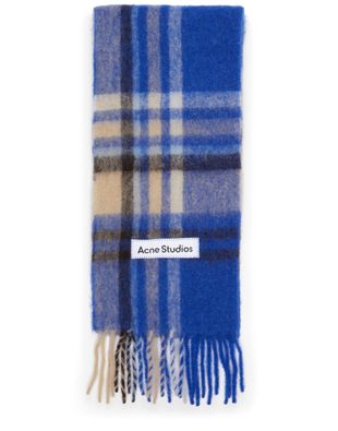 Acne's Fringed scarf features eye-catching fringe details and fringed edges, adding a unique touch to a classic accessory. The checked pattern complements the fringe, and the appliquéd logo provides a subtle branding accent. This versatile scarf is perfect for adding a fashionable flair to any outfit, day or night.