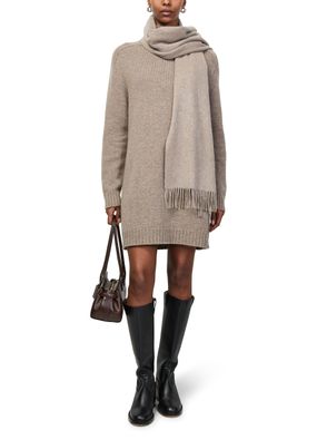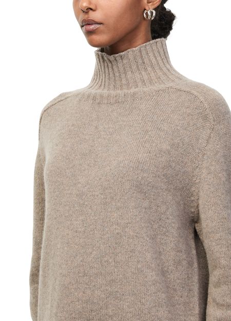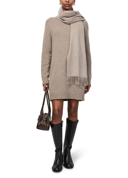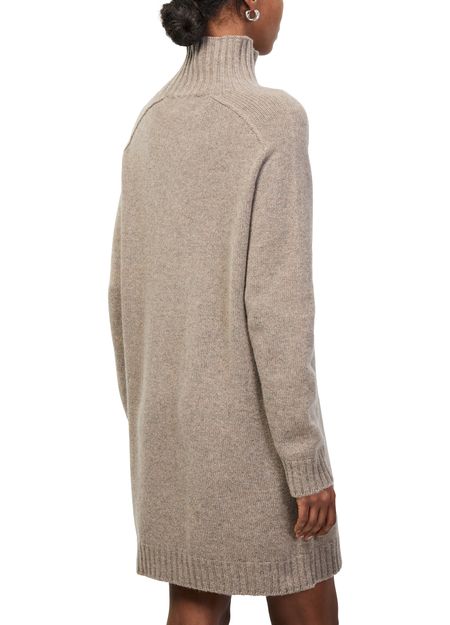Introducing Bompard's high-neck dress, a perfect blend of style and comfort. This mini dress features a loose fit with a warm, marled material, complemented by a rollneck and dropped sleeves. The ribbed texture adds a touch of elegance, making it ideal for any occasion.