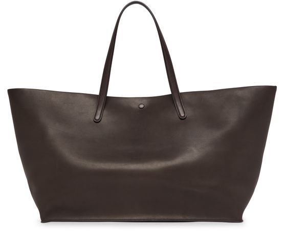 The Row's XL Idaho handbag showcases a sleek design with thin straps and double handles, perfect for a chic look when worn on the shoulder. Its snap-button fastening secures a single compartment, while a zippered interior pocket and detachable interior purse add functionality, making it an essential accessory for modern elegance.
