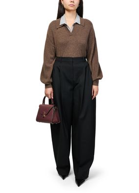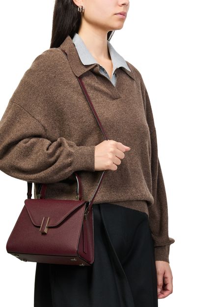 Reveal Valextra's Iside mini bag, crafted from grained leather with a refined gold clasp and visible stitching. The single handle and adjustable thin strap offer versatile styling, while the interior pocket and single compartment ensure practical elegance for your essentials.