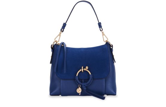 A relaxed bohemian elegance emanates from this leather and suede Joan shoulder bag from See By Chloé. This multipurpose leather and suede model will draw you in with its natural color. The design's iconic addition, a ring with a spring closure, features braiding and a metal charm engraved with the brand's logo. Pair it with a floral printed dress and matching sandals to get the...