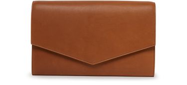 The Row's Large envelope bag showcases a sleek flap closure, exuding sophistication. Its gold finish catches the eye, while the embossed logo adds a touch of elegance. Inside, a zippered interior pocket offers practicality, making it the perfect companion for both day and night, effortlessly blending style and functionality.