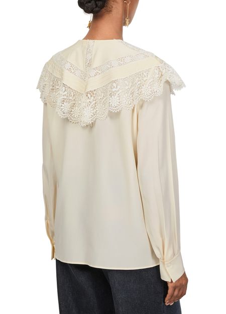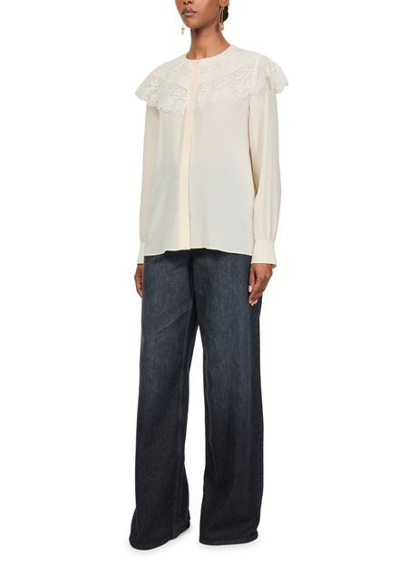Unveil Chloe's long sleeved top with exquisite floral embroidery that adds an artistic flair. This blouse features a classic crew neck and cuffed sleeves, creating a sophisticated silhouette. With a concealed closure, it offers a seamless fit, perfect for both casual and formal settings.