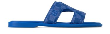 This version of the LV Oasis mule comes in grained calf leather, which replicates the appearance of Louis Vuitton's signature Damier canvas. The brightly colored upper is complemented by a tonal outsole in supple, lightweight rubber. This model is distinguished by the interlaced LV motif which connects its two straps.