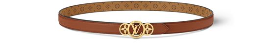 The slim and feminine LV Trio 20mm Reversible Belt offers an eye-catching new signature. Combining fine cowhide with Monogram canvas on the reverse side, its centerpiece is a spectacular gold-finish buckle featuring an LV Circle emblem flanked by two finely crafted Monogram Flowers. An elegant, versatile belt with an original House touch.