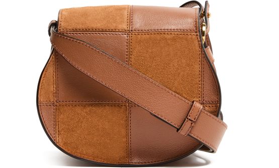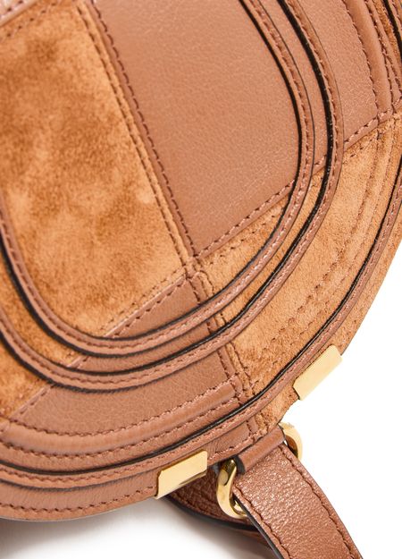 Reveal Chloe's Marcie shoulder bag, crafted in bi-material with signature saddle stitch and gold finish. The single handle and flap closure offer refined practicality, while visible stitching and an interior pocket add both style and function to this modern essential.