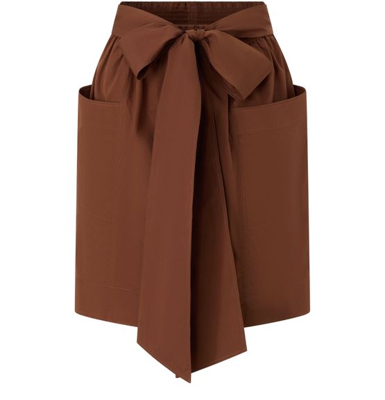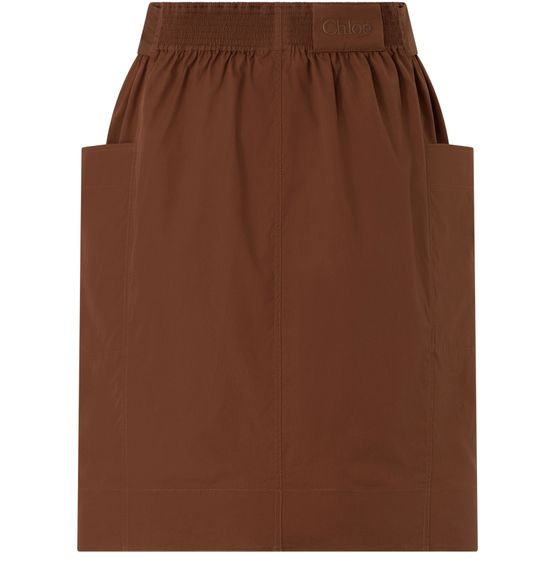 Reveal Chloé's midi skirt with tie with tie, designed with an elasticated waist for effortless comfort. The gathered waist and front paneling create a refined silhouette, while patch pockets and an embossed logo at the back add signature detail. Perfect for versatile styling from day to evening.