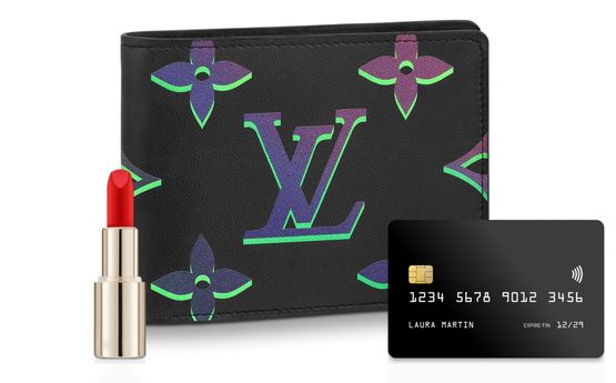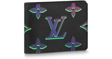 The Multiple Wallet is fashioned from extra-supple and smooth calfskin adorned with the Monogram Spotlight print. The Monogram Flowers and LVs seem to emit vivid neon echoes of themselves. Functional and sophisticated, the Multiple slips easily into most pockets.
