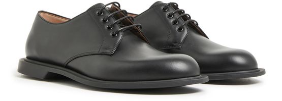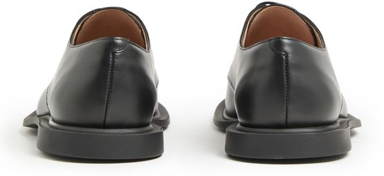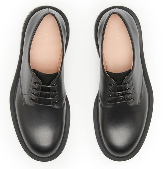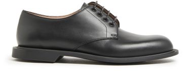 • Description : logo-printed insole, low heel, round toe, visible stitching, lace-up shoes, closed.