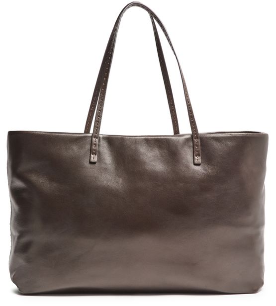 Reveal The Row's Nuance tote bag, crafted from smooth leather with double handles for effortless carrying. The spacious interior compartment and interior patch pockets offer practical organization, while visible topstitching highlights refined craftsmanship. This tote blends modern sophistication with everyday versatility.