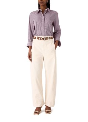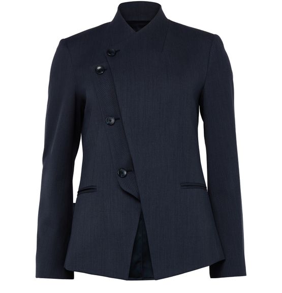 Reveal TWP's Oliver blazer, defined by its short silhouette and high neck for a modern edge. The front buttoned closure and long sleeves offer timeless appeal, while side welt and front pockets add practical sophistication. An asymmetric cut ensures this piece stands out for versatile styling.