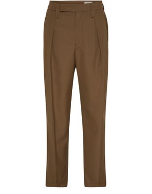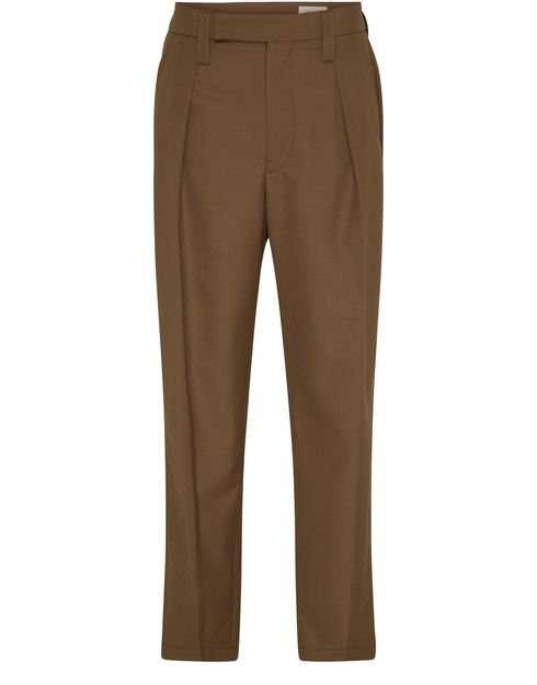 • Description : Regular-fit pants, front pleats, side welt pockets, belt loops, concealed zipper.