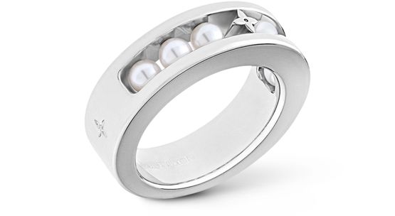 This meticulously crafted Pearls Fusion Ring encases resin pearls and a Monogram Flower within its silver-finish metal framework. Simultaneously masculine yet delicate, this tactile piece with rolling pearls is a striking contemporary ornament, which can be worn on its own or complemented with earrings, a bracelet and a necklace from the same capsule.