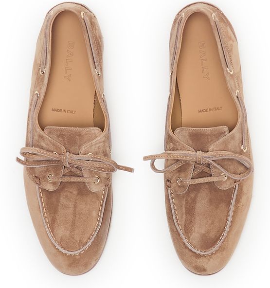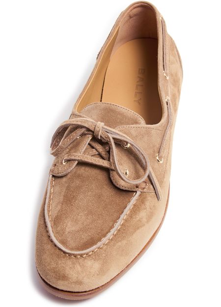 Reveal Bally's Plume loafers, crafted from supple suede for a refined touch. The closed, round toe and low heel offer timeless comfort, while visible stitching and a lace-and-strap closure add modern detail. Signature branding elevates these loafers, making them a standout addition to any collection.