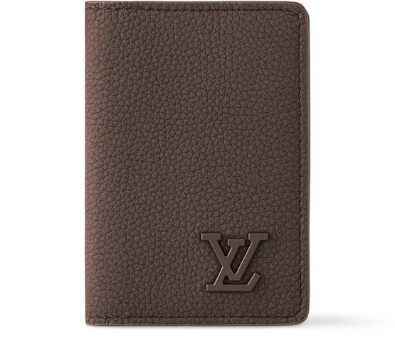 Made from grained LV Aerogram cowhide-leather, this Pocket Organizer is signed with LV Initials in matching-colored metal. This compact wallet is designed to optimize functionality while minimizing size. The wallet boasts three card slots and five pockets inside, an outside pocket on the back, and slips easily into any pocket.